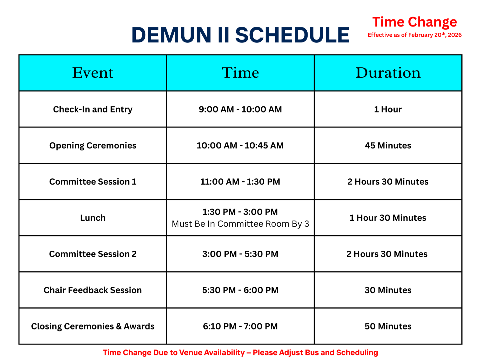 DeMUN secretariat will welcome our delegates and advisors to our conference. A special guest will address the conference, along with an exciting video to showcase our committees.